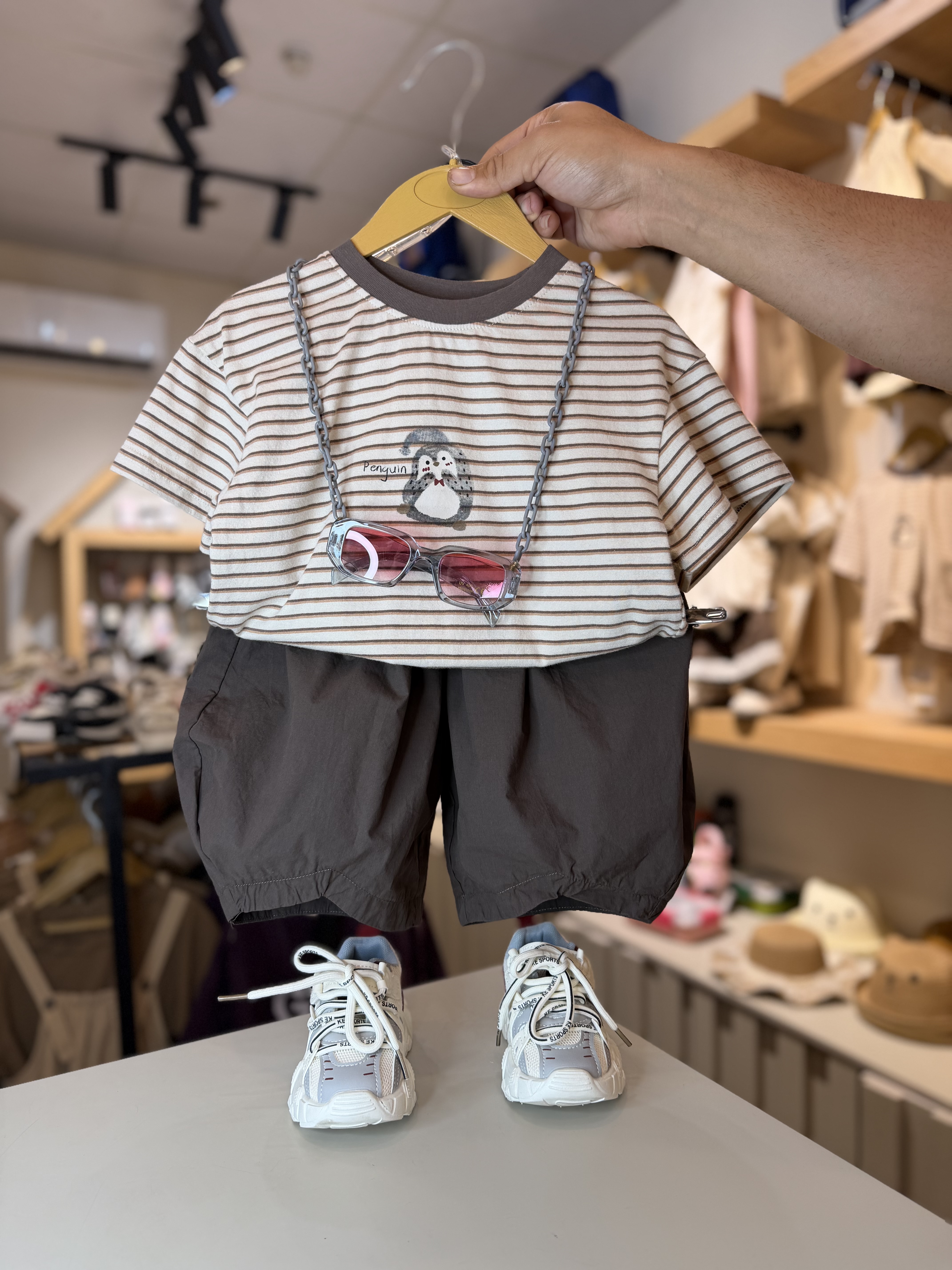 ست راه راه شلوارک قهوه ای